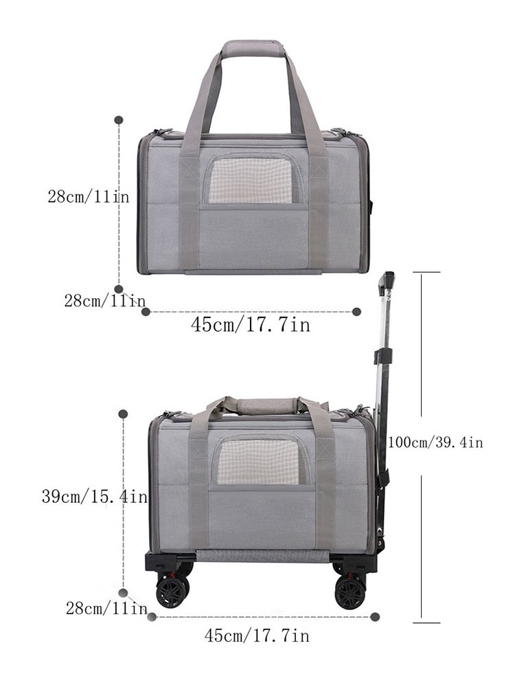 This detachable rolling pet carrier is designed for convenient daily transportation of cats and small dogs. The multifunctional structure allows it to be used as both a handheld carrier and a rolling trolley bag, reducing carrying pressure during outdoor activities and urban outings.