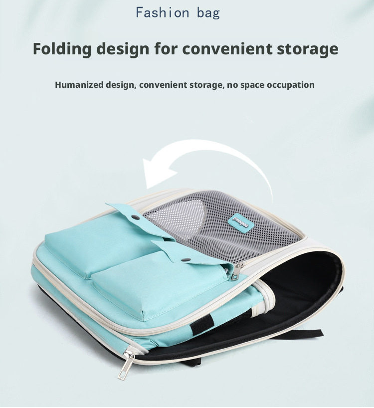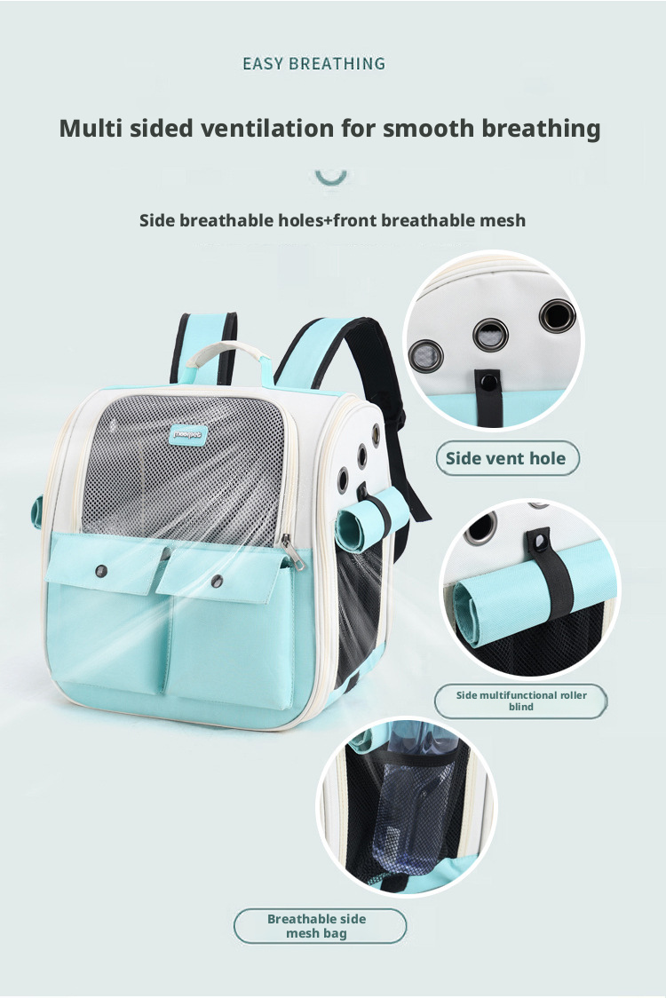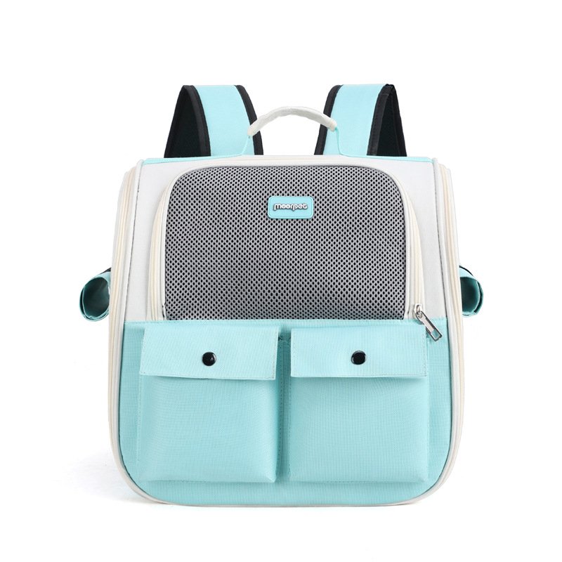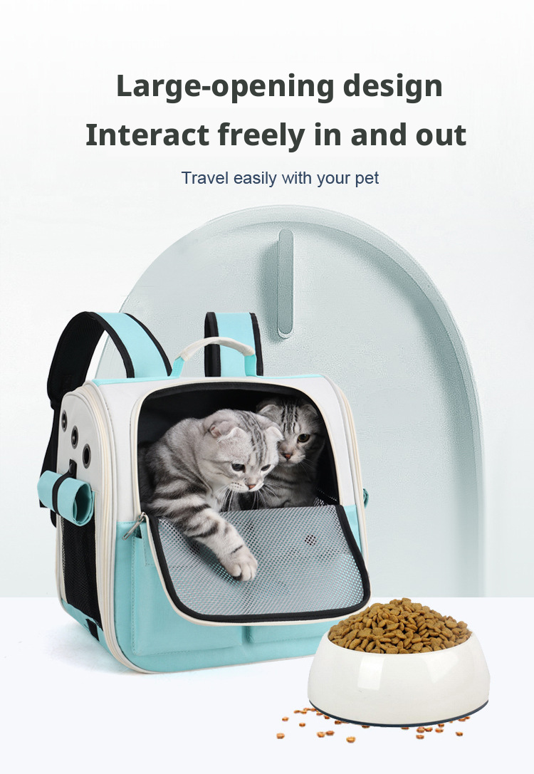 This portable pet backpack is specially designed for cats and small dogs, providing a safe and comfortable travel experience. It features two front pockets for storing treats and accessories, and a breathable mesh design to keep your pet cool.
